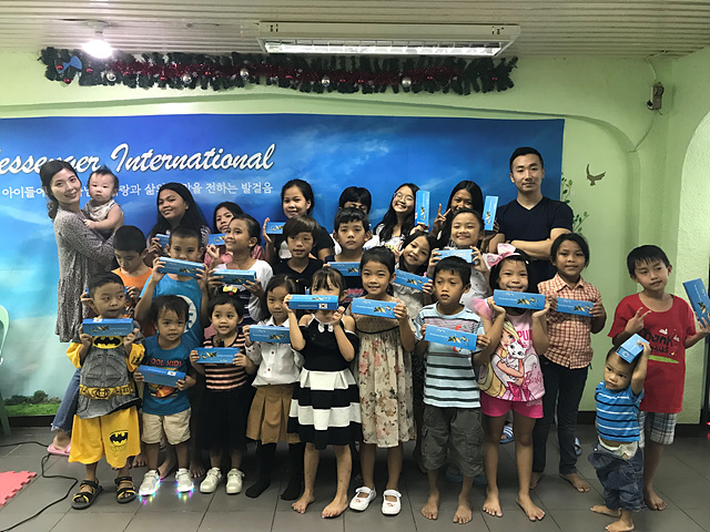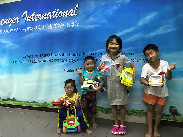 아이들은 한국에서 도착한 학용품, 신발, 장난감 등을 나누며 하루종일 함박 웃음을 지었습니다.